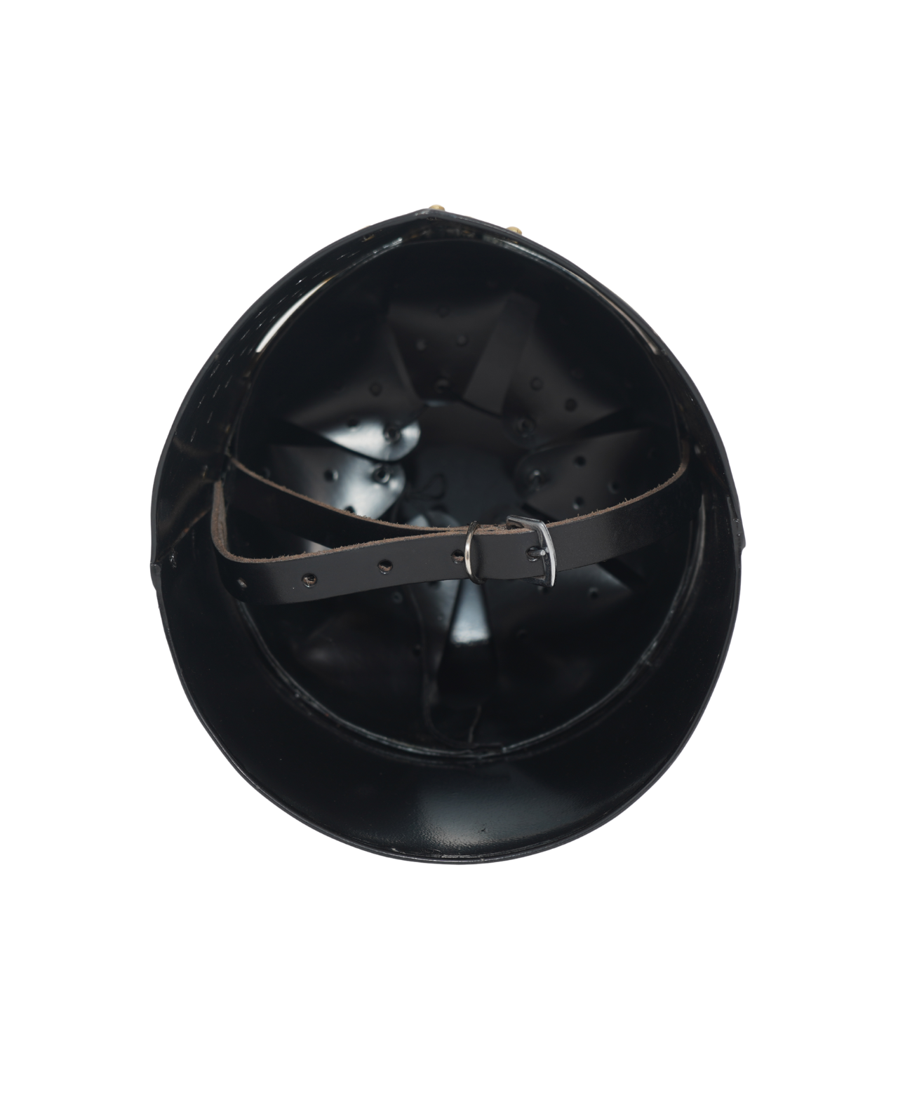 A striking blend of strength and style, this Brass Crusader Great Helmet in matte black brings a bold, dramatic edge to classic medieval design.