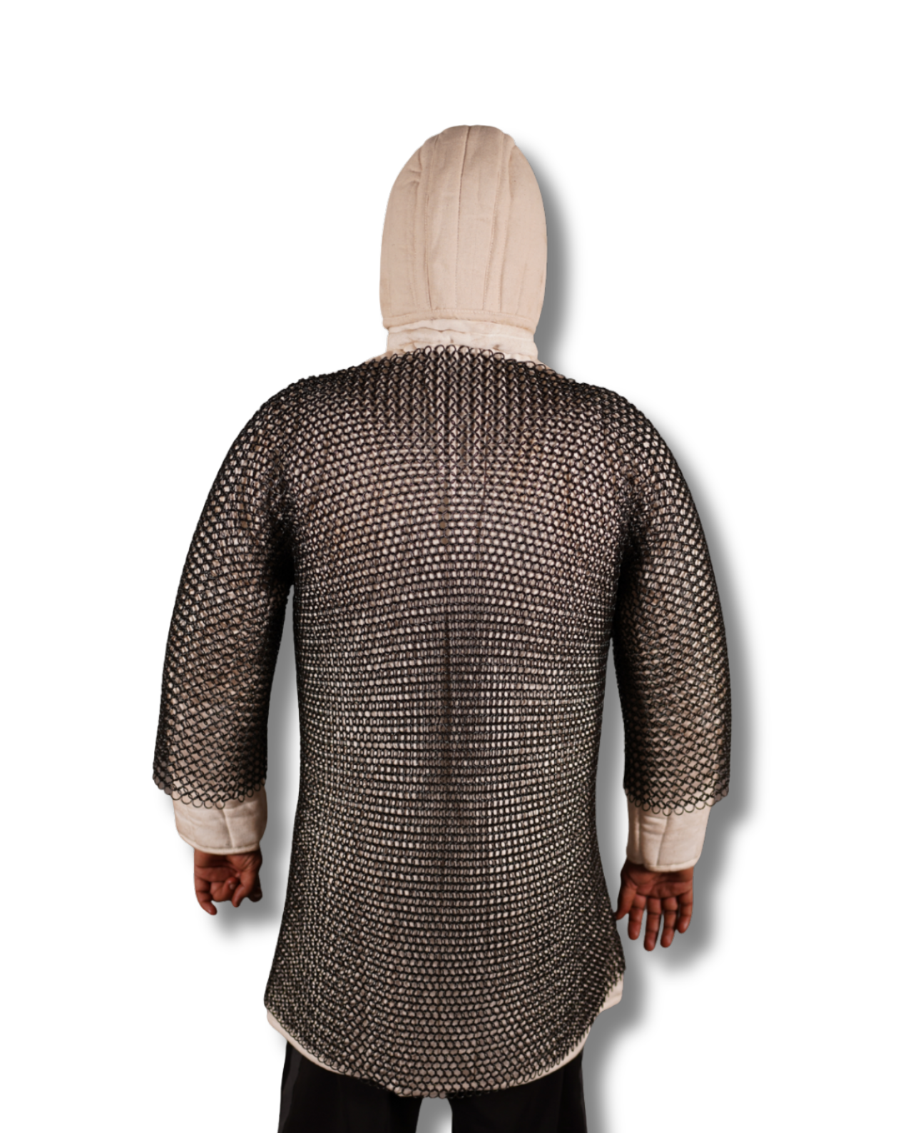 This handcrafted chainmail haubergeon is made from 9mm round mild steel rings in durable 16-gauge butted construction. Designed with a half-sleeve style Black Color, it offers a flexible, authentic drape ideal for display, costuming, and collectors.