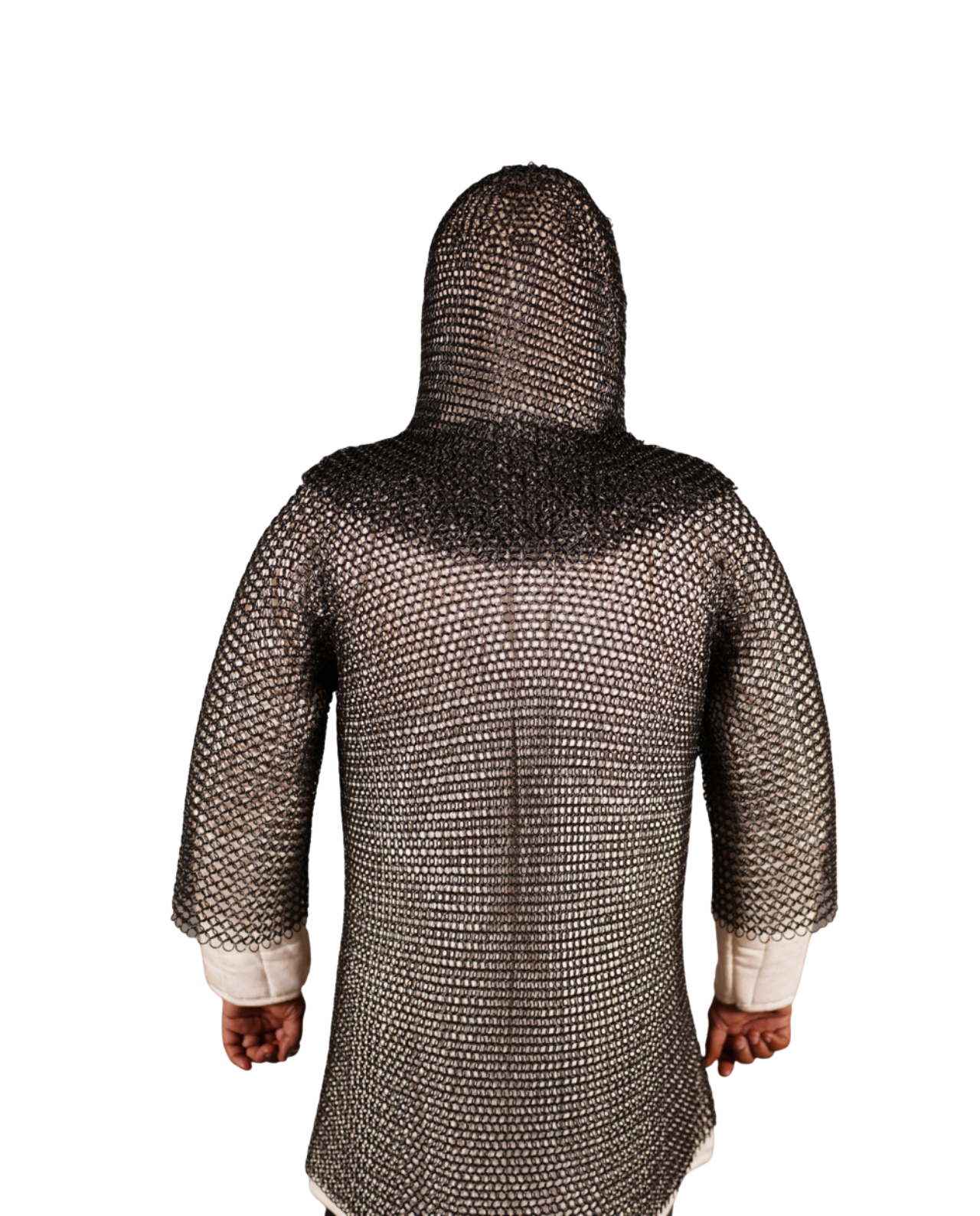 Add a touch of historical craftsmanship to your collection with this Handmade Blackened Zinc-Plated Chainmail Shirt featuring an attached Coif. Expertly crafted from durable mild steel rings 9 mm and 16 Gauge, this chainmail offers a classic medieval-style look while maintaining excellent flexibility and comfort.