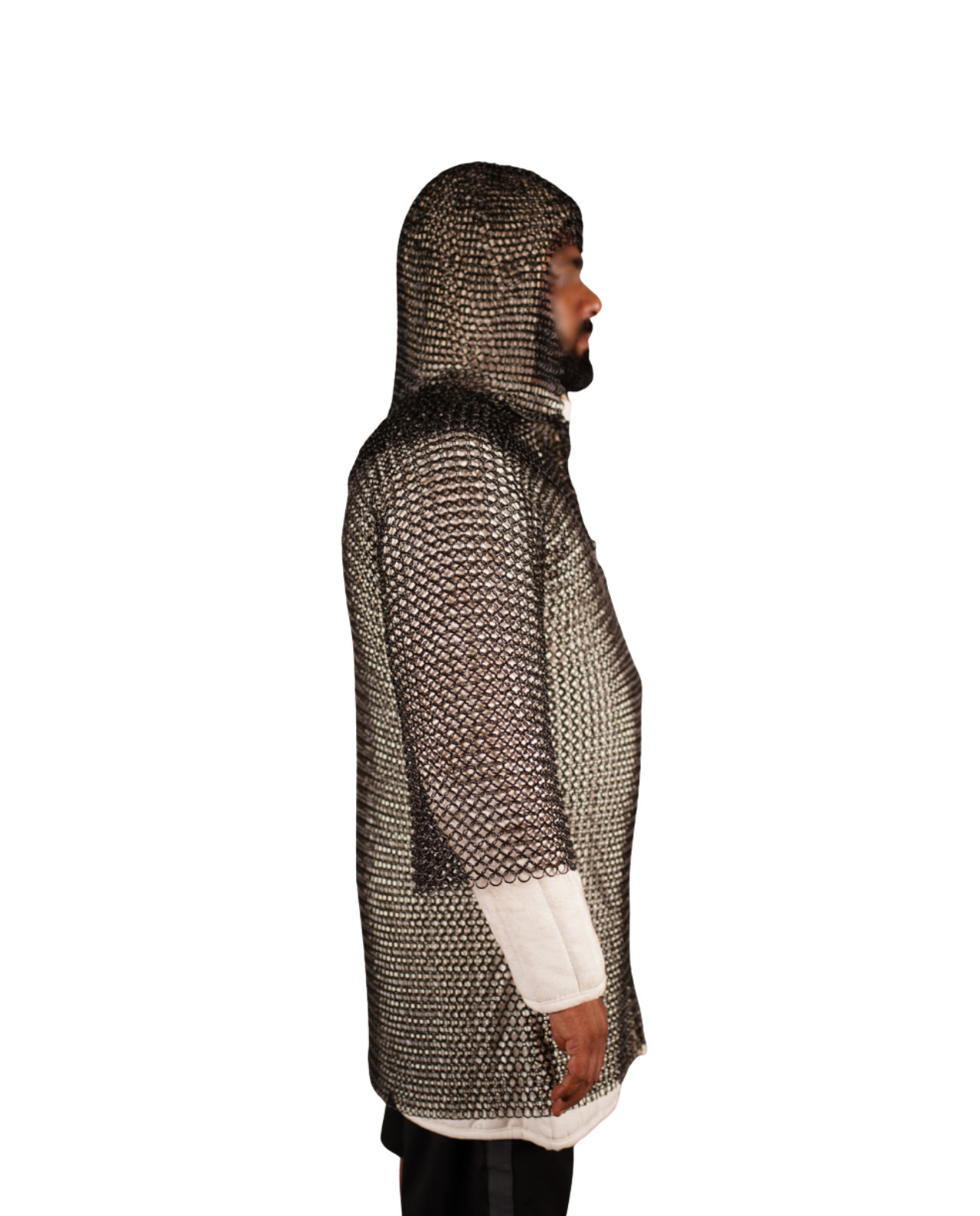 Handmade Zinc-Plated Chainmail Shirt with Attached Coif